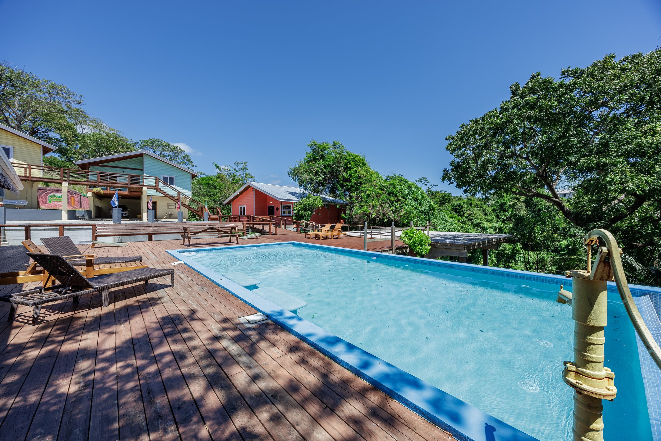 The private Eureka Villa patio overlooks the newly finished pool and pool house for a peaceful view each morning.